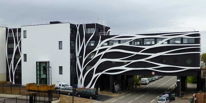 En bardage extérieur, le Corian® se décline en une large gamme de teintes pour les