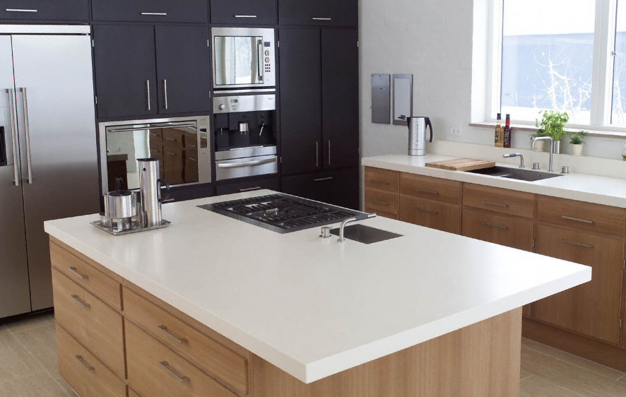 Aucune pièce ne révèle autant l'âme de la maison que la cuisine.... Que vous aimiez un design simple, blanc ou plus élaboré et coloré, Nous vous aidons à le réaliser grâce au Corian®. Bien combiné - pratiquement et visuellement - avec d'autres matériaux tels que l'acier inoxydable, le bois ou le verre, le Corian® offre un design fluide et sans joint apparent