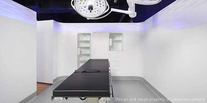 des salles d'opération, les auges chirurgicales, paillasses de désinfection, lavabos et
